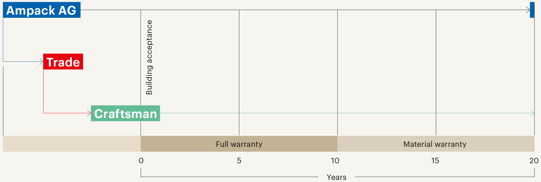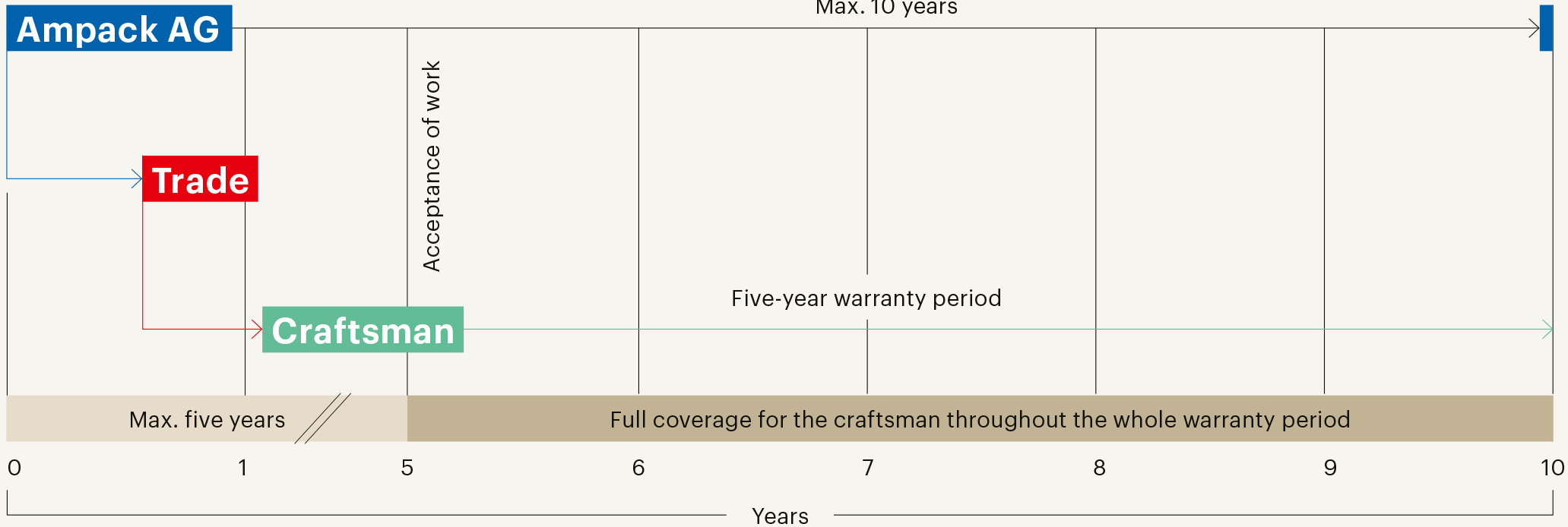 Ampack’s extra-contractual warranty on behalf of the craftsman covers the entire warranty period that the worker has vis-à-vis the client.